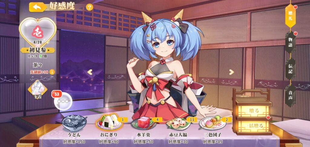 推し活のように、おもてなしで好感度を上げる機能もあるので、