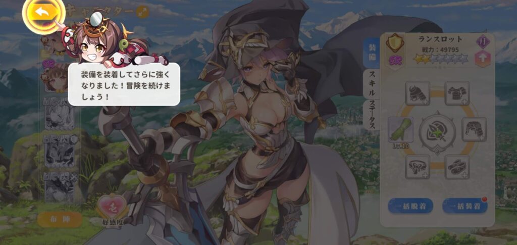 序盤はキャラのレベルアップや装備強化など、育成の基礎が少しずつ開放されていきます。