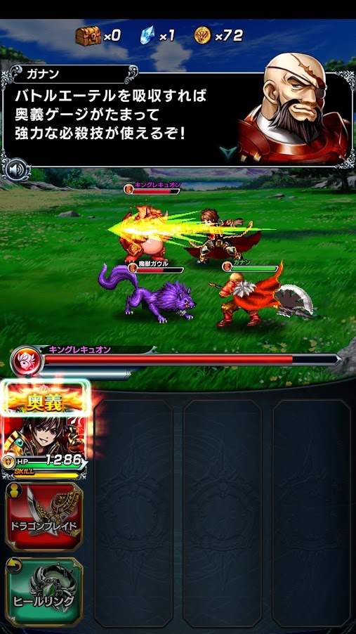 バトルの方法やスキルゲージの見方・奥義の発動方法などチュートリアルがとても丁寧なので迷いません。
