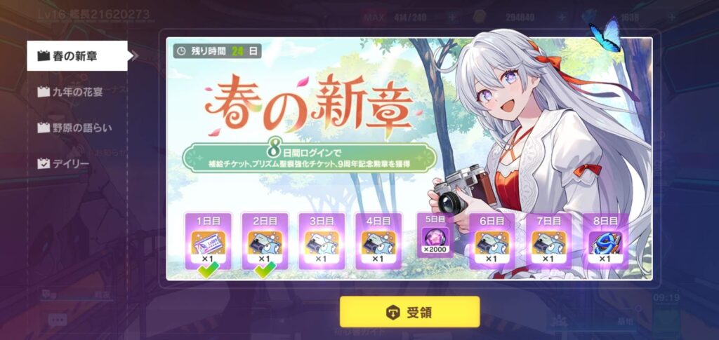 毎日のログインボーナスもありますので受取はお忘れなく